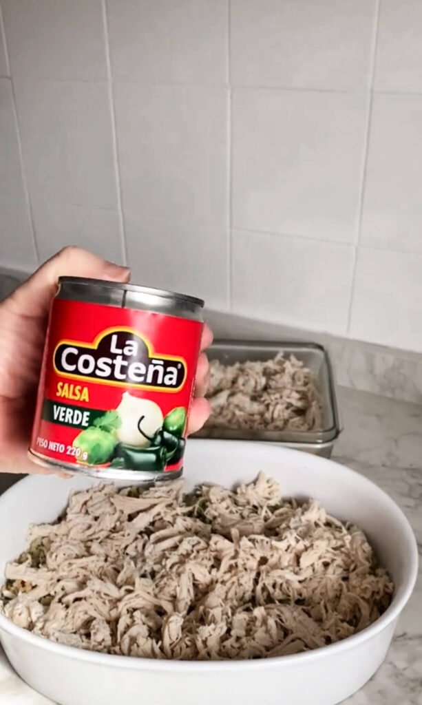 • 3 latas de 220 g de salsa verde mexicana. Yo uso bastante porque me encanta, pero es picante, así que ajusta a tu gusto.